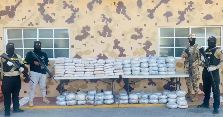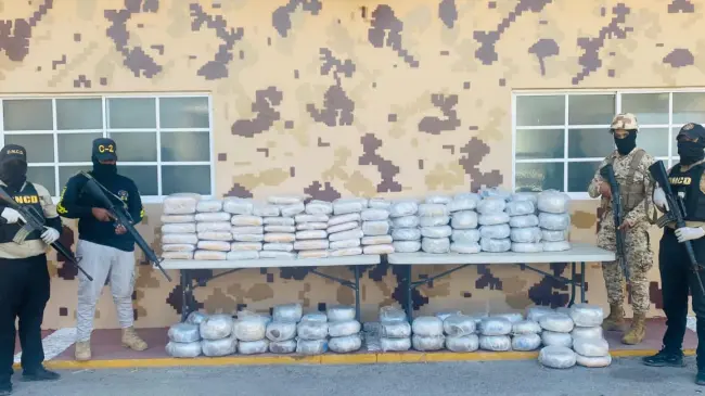 El CESFRONT y la DNCD decomisaron 815 libras de un vegetal presuntamente marihuana en un camión en Pedernales. El operativo incluyó el desmantelamiento del vehículo para acceder a un doble fondo.