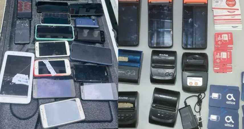 El allanamiento se llevó a cabo en el sector Los Pomos, con orden judicial No. 2024-AJ0003261, donde se ocupó la cantidad de (31) celulares de diferentes marcas y modelos, (86) tarjetas SIM de diferentes compañías, (5) printer portables, (2) teclados para máquinas tragamonedas y una tablet.
