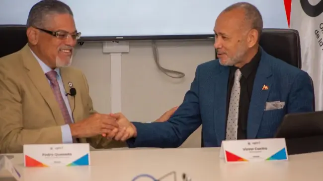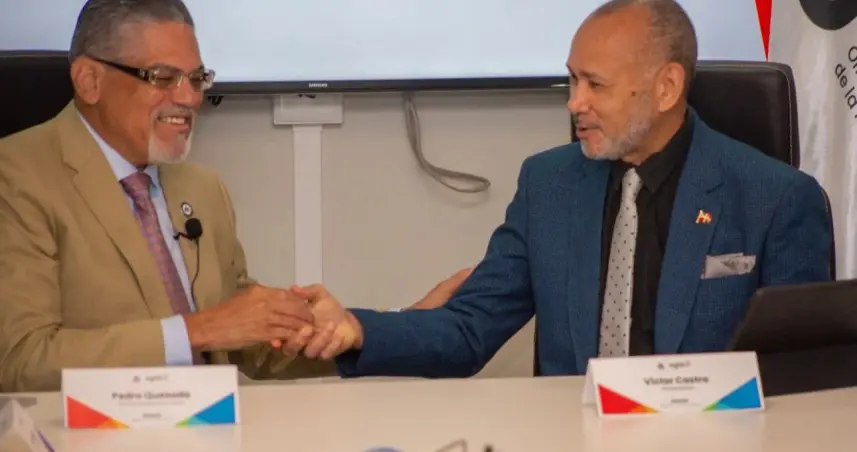 Pedro Quezada, director de la OGTIC, y Víctor Castro, director ejecutivo del INABIE suscribieron este lunes un acuerdo interinstitucional en el que expresaron la voluntad de ambas instituciones para desplegar instrumentos, mecanismos y normativas que faciliten la interoperabilidad entre sistemas del Estado dominicano.