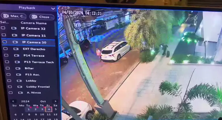 El hecho ocurrió frente a la Torre Rubí, una edificación de personas de altos ingresos, en la zona más cara del Distrito Nacional. Un seguimiento a las cámaras de seguridad de la zona ayudó a dar con el paradero de los jóvenes, que luego fueron detenidos, a poco más de un kilómetro, en El Manguito.