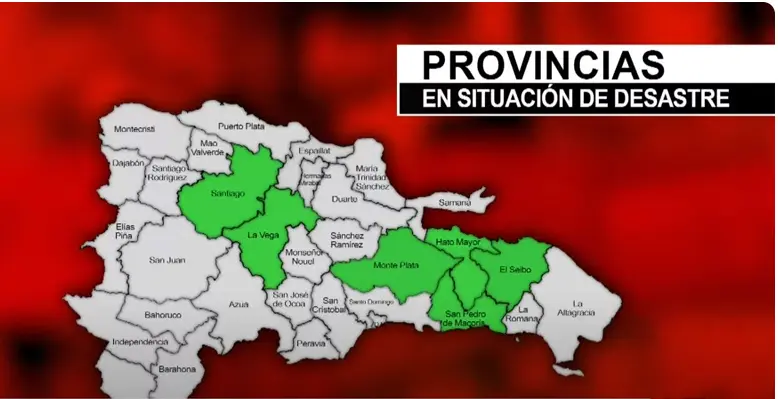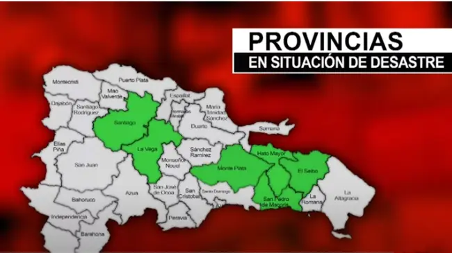Debido a la saturación de los suelos y a las medidas preventivas frente a las lluvias que se han registrado en los últimos días, el COE ha dispuesto alerta verde para las provincias Hato Mayor, El Seibó, Monte Plata, San Pedro de Macorís, Santiago y La Vega.