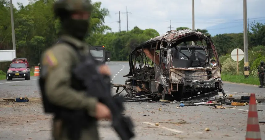 El presidente colombiano, Gustavo Petro, atribuyó los hechos al Estado Mayor Central (EMC), la mayor disidencia de la antigua guerrilla de las FARC, y afirmó que fueron una "reacción terrorista" a una ofensiva del Ejército en la región del Cañón del Micay, en el vecino departamento del Cauca, contra ese grupo armado.