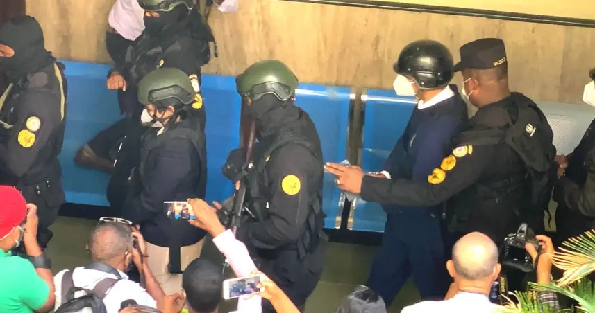 El lunes la jueza Kenya Romero dictó 18 meses de prisión preventiva en Najayo-Hombres contra los acusados, a excepción de Raúl Alejandro Girón Jiménez quien fu enviado a prisión domiciliaria con vigilancia de la Procuraduría.