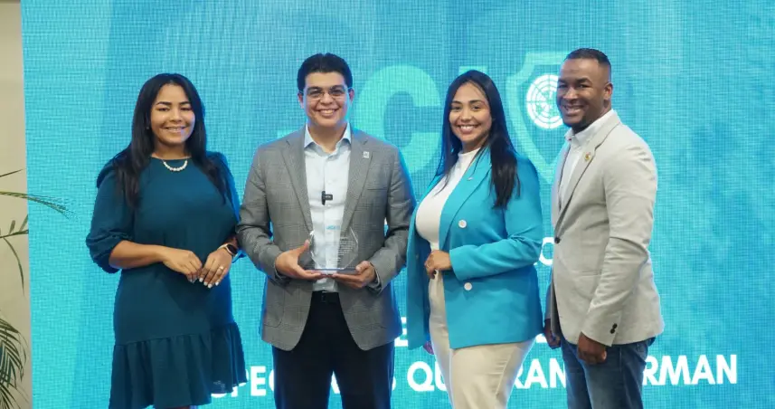 Durante el Jaycees´72 Talks: Perspectivas que transforman, la presidenta de la organización, Ámbar Guillermo, entregó un reconocimiento al director de la CAASD por su invaluable contribución al desarrollo de las comunidades del Gran Santo Domingo.