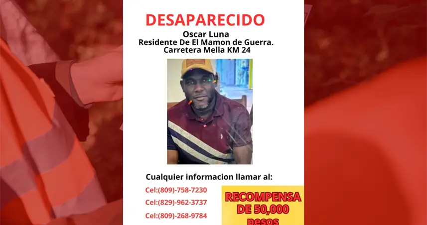Santo Domingo.- La familia de Oscar Luna, residente en el sector El Mamón, Guerra, reportó su desaparición luego de que saliera de su vivienda en horas de la mañana con rumbo a Santo Domingo Este y desde entonces no se tenga información sobre su paradero.