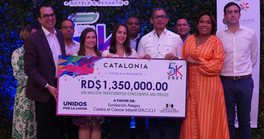 Por igual, los ejecutivos resaltaron que en la carrera participaron niños y adultos de todas las edades de República Dominicana, México, España y otras partes del mundo, a la vez, corredores profesionales y aficionados fueron premiados con estadías en los Hoteles Catalonia en el Caribe y Europa. El acto de entrega de fondos recaudados se dio a conocer con el valor de RD$1, 350,000.00 y contó con la participación de la Sra. Maria Teresa Sangiovanni, Encargada de Mercadeo y Recaudación de Fondos de Facci quien recibió los fondos y resalto estar agradecida de siempre contar con este gesto tan importante para la vida de los niños afectados con la enfermedad de cáncer.
