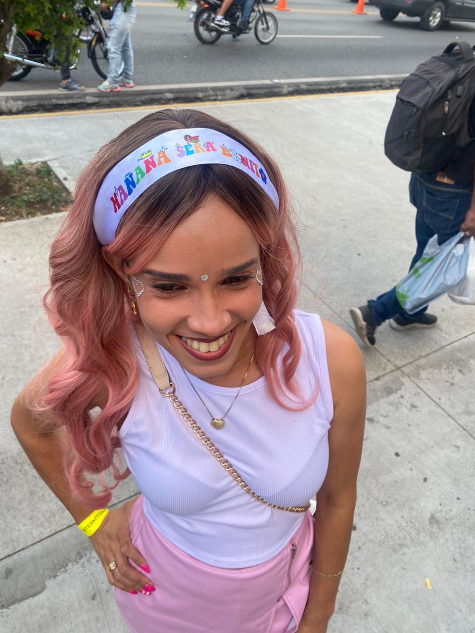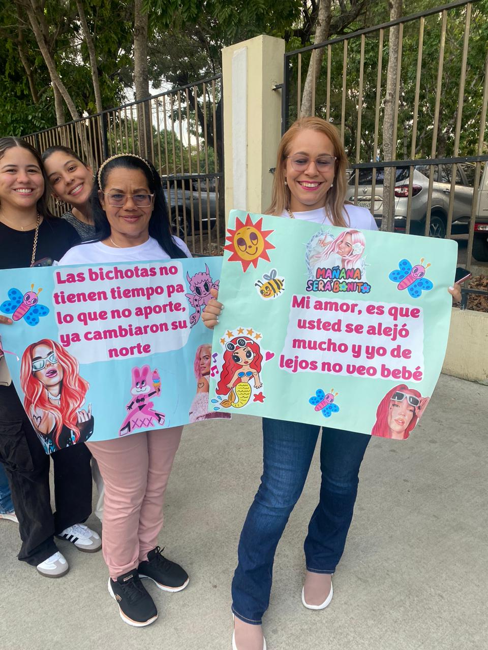 SANTO DOMINGO.- Con carteles, peinados extravagantes, mariposas, sombreros, brillos y “outfits” alusivos a la artista colombiana Karol G, así se han presentado al Estadio Olímpico Félix las fanáticas de la cantante, quien esta noche tendrá la primera función de su concierto en el país.