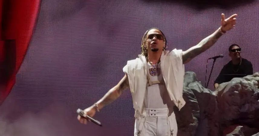 A las 9:50 de la noche, el exponente de música urbana hizo su aparición en el escenario.