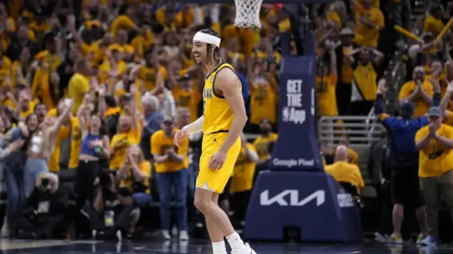 Después de desperdiciar ventajas en la segunda mitad en cada uno de los dos primeros juegos, fueron los Pacers quienes le dieron la vuelta a este. Con los fanáticos de Nueva York cantando "Let's Go Knicks" en la arena de los Pacers, Indiana encontró el toque final que le faltaba a principios de esta semana cuando la nueva estrella de la WNBA, Caitlin Clark, vio el juego desde una suite con su novio, Connor McCaffery, y sus compañeros de equipo de Indiana Fever.