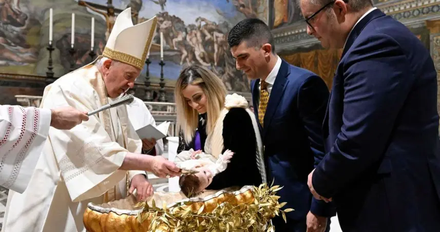 Esta ceremonia, cargada de ritos, rememora el bautizo de Jesús en las aguas del río Jordán y es una de los pocas que tienen lugar en la Capilla Sixtina del Vaticano, bajo los espectaculares frescos de Miguel Angel y el lugar donde se celebran los cónclaves para elegir al papa.
