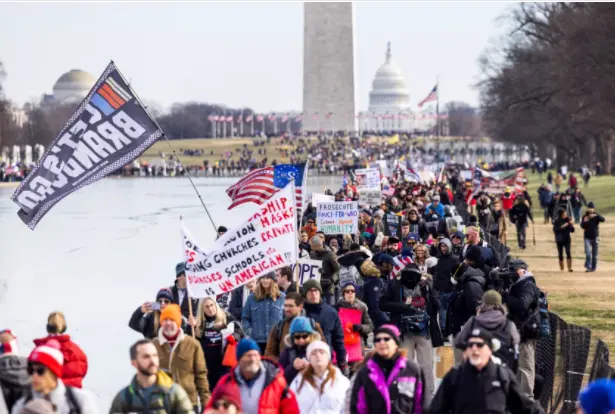 "Paso a paso hasta la victoria final", respondió con una sonrisa al ser preguntado sobre esta cuestión Janer Kadin, un vecino de la cercana Maryland que acudió a la manifestación con una bandera en que podía leerse "Let's Go Brandon", un eslogan que se ha popularizado entre la derecha estadounidense para insultar al presidente Biden.