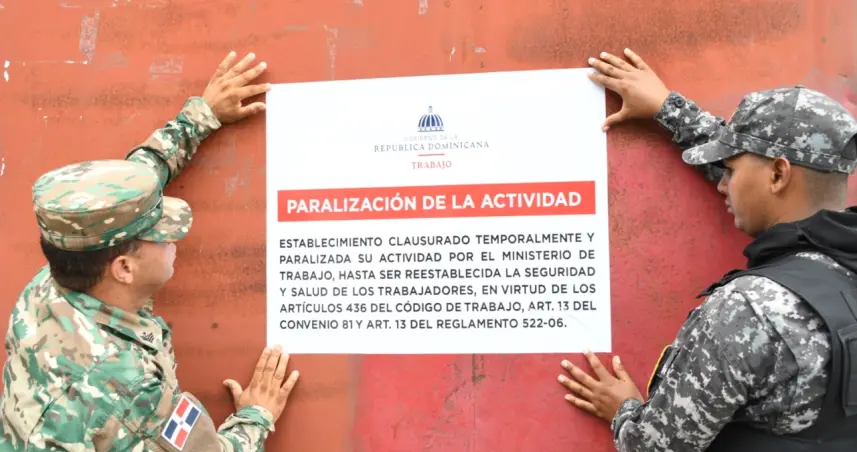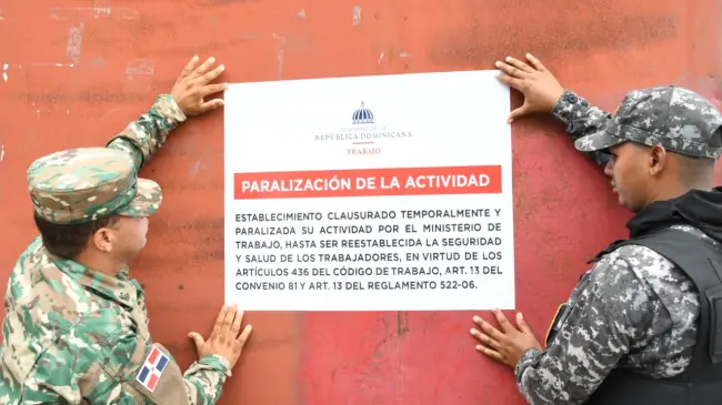 Santo Domingo El Ministerio de Trabajo.– Santo Domingo.- El Ministerio de Trabajo en el marco de sus atribuciones legales, dispuso la paralización de actividades en once empresas ubicadas en la Zona Franca Riosur de Santo Domingo Este, ante el peligro inminente para la seguridad y salud de sus trabajadores.