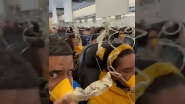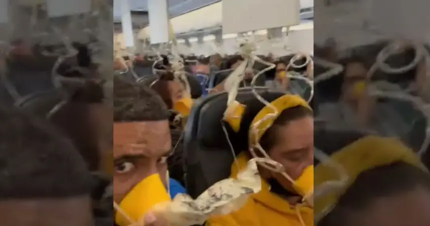 En el video se puede observar cómo los pasajeros se colocaron de inmediato las máscaras de oxígeno para poder respirar.