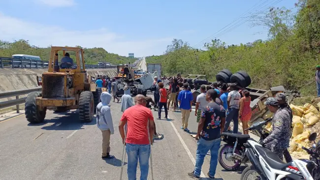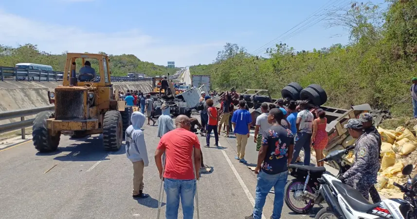 SAN PEDRO DE MACORÍS. Información preliminar sobre el accidente de tránsito ocurrido en la Autovía del Este a la altura del Kilómetro 14, habría sido ocasionado una patana cargada de azúcar.