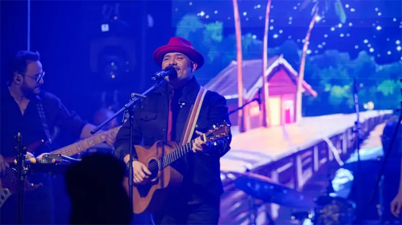 En la recta final, la energía contagiosa de "Buscando guayaba" atrapó al público entre bailes y coros colectivos. "Te di", primero a guitarra y luego en versión típica, selló la complicidad de la multitud con el reconocido cantautor.