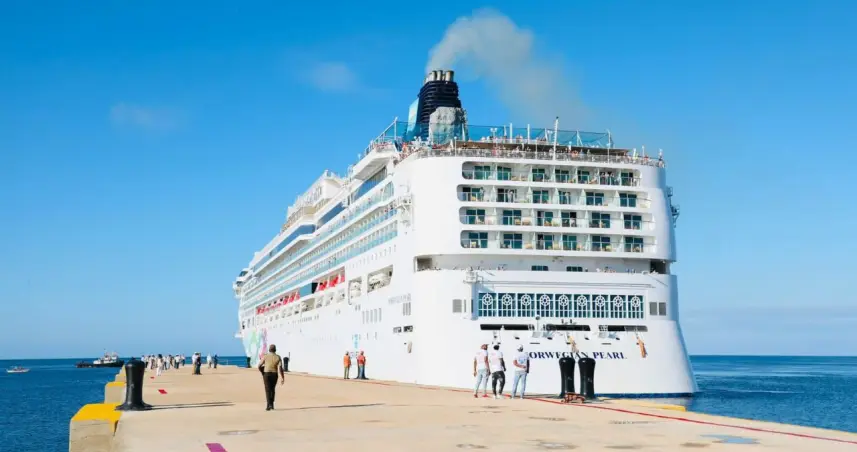 Pedernales.- El crucero Norwegian Peal, proveniente de Miami con casi tres mil pasajeros a bordo en su ruta por varios destinos del Caribe, arribo este jueves al nuevo puerto de Cabo Rojo, con lo que se da el banderazo de apertura al turismo internacional en Bahía de las Águilas y la región sur del país y la incipiente industria sin chimenea en esa zona.