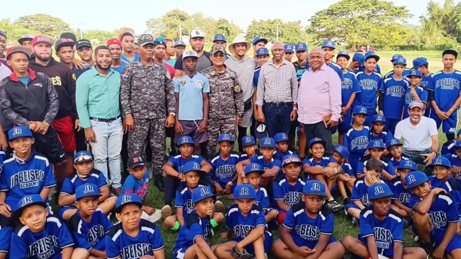 El coronel Jacobo Mateo Moquete, comandante de Deportes de la Policía Nacional y Coordinador Deportivo de DE VUELTA AL BARRIO, agradeció a los peloteros en nombre del Ministro Jesús Vásquez Martínez, el tiempo dedicado a los niños .