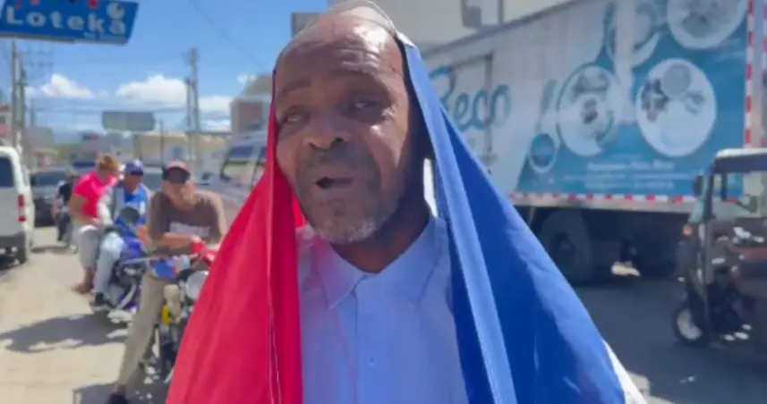 Valverde.– Valverde.- Con esperaza y una bandera sobre su cabeza, Rafael Félix, un peregrino oriundo de Barahona, sigue su travesía caminando pueblo por pueblo a lo largo de la República Dominicana en busca de ayuda para construir una vivienda digna.