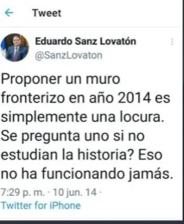 En un tuit de junio de 2014, José Ignacio Paliza (@JosePaliza), dijo que el muro sería “un gran negocio que no resolverá nada”.