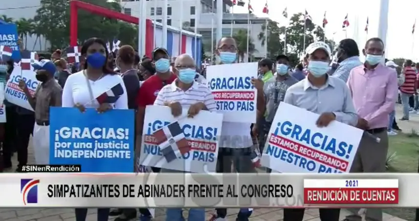 Un grupo de simpatizantes del presidente Luis Abinader se acercaron hoy al Congreso Nacional para expresar su apoyo a la gestión del mandatario que hoy hace su primera rendición de cuentas.