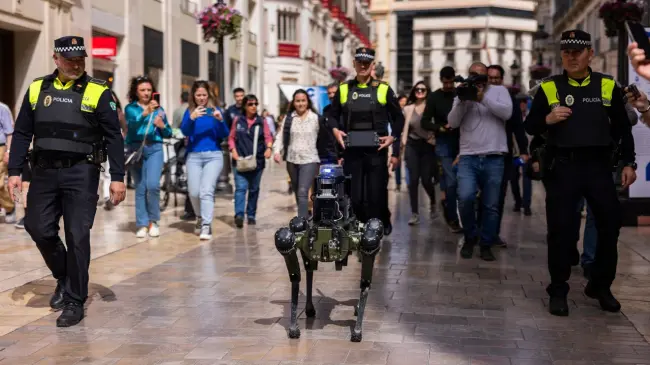 Málaga España -.– Málaga España. - Tiene cuatro patas, pesa unos 35 kilos y apariencia de perro, pero corazón de metal. Dotado de inteligencia artificial, este robot ha sido diseñado en la Universidad de Málaga (UMA), al sur de España, para apoyar a la Policía Local de esta ciudad en labores de patrulla, con una primera misión: detectar patinetes imprudentes.