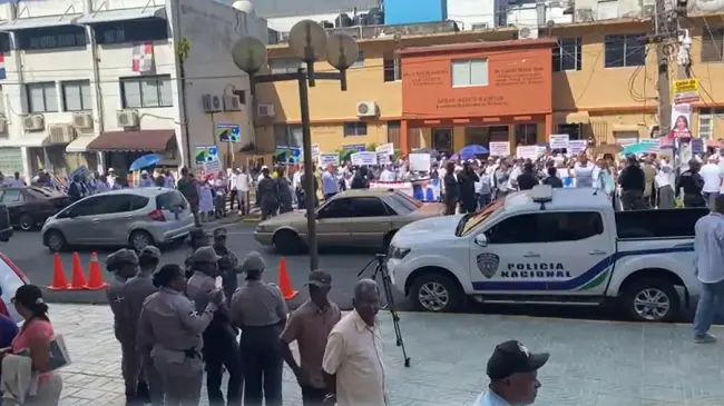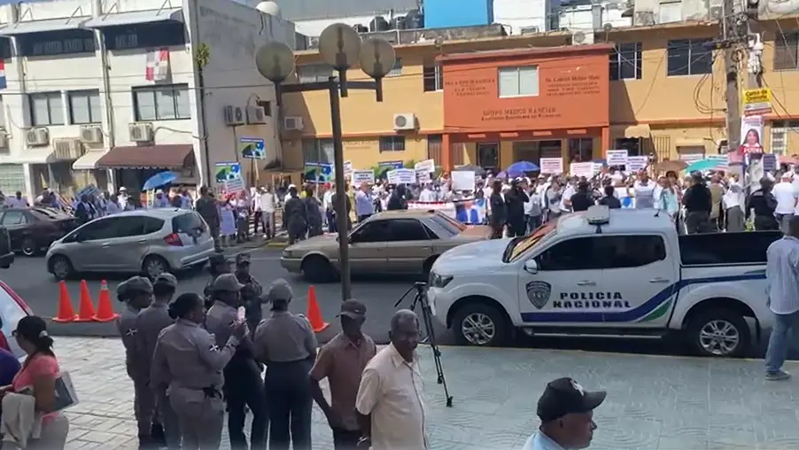 SANTO DOMINGO.- Apostados en las afueras del Palacio de Justicia de Ciudad Nueva se encuentran la mañana este viernes dos grupos de personas que están a favor y en contra del abogado Johnny Portorreal Reyes, acusado de estafar a miles de personas de apellido Rosario que buscaban una supuesta herencia millonaria.