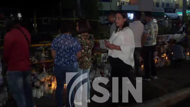 El área, que al principio solo albergaba algunos ramos y velones frente al local siniestrado, se ha ido expandiendo tanto dentro de la plaza contigua al Jet Set como a lo largo de toda la acera de la avenida Independencia, en dirección este y sur.