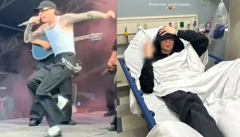 El artista de 24 años, aclamado por revitalizar la música mexicana fusionándola con géneros urbanos como el trap y el reguetón, se torció al parecer el pie derecho en el escenario, pero continuó su actuación, saltando con el otro pie e incluso rechazando una silla, según Billboard.