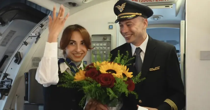 Piloto propone matrimonio a novia azafata delante de los pasajeros