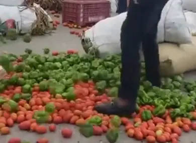 Igualmente, en el audiovisual se visualiza como el grupo de hombres riega en el piso los productos y los pisotean.