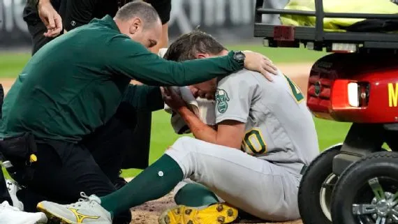 Los compañeros de equipo y el personal de trainers de los Athletics acudieron en su ayuda en el montículo, donde Bassitt permaneció en el suelo durante varios minutos. Lo ayudaron a subir a un carrito de golf y lo sacaron del campo.