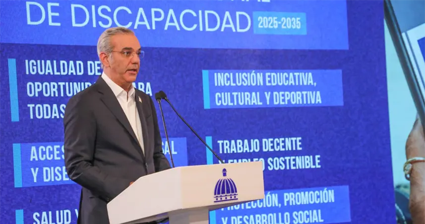 Santo Domingo.– El presidente Luis Abinader presentó este lunes el Plan Nacional de Discapacidad 2025-2035, una política pública integral orientada a garantizar la igualdad de oportunidades para todas las personas, accesibilidad universal, inclusión educativa, cultural y deportiva, así como trabajo decente y empleo sostenible.