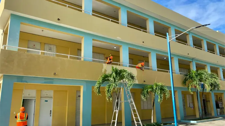 Santo Domingo.- Los trabajos de remozamiento de planteles escolares como parte del programa "Navidad en las Aulas 24/7", que ejecuta el Gobierno a través de la Dirección de Infraestructura Escolar, avanzan de manera acelerada en el Distrito Nacional, el Gran Santo Domingo y en todo el territorio nacional.