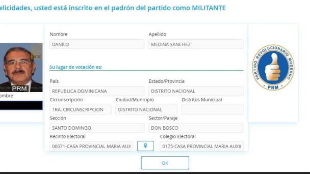 Dentro de los dirigentes del PLD que aparecían en el padrón del PRM están el expresidente y presidente de esa organización, Danilo Medina, Gonzalo Castillo, exaspirtante a la Presidencia y también Eduardo Hidalgo, presidente de la Asociación Dominicana de Profesores (ADP).