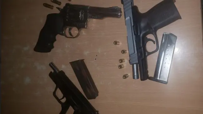Según la nota policial, el vehículo requisado en su interior se ocuparon tres armas de fuego de tipo revólver marca Dan Wesson calibre 357, una pistola marca Arcus calibre nueve milímetros, y una pistola marca Smith Wesson nueve milímetros, dichas armas no tenían documentos que demuestren la legalidad para sus portadores.