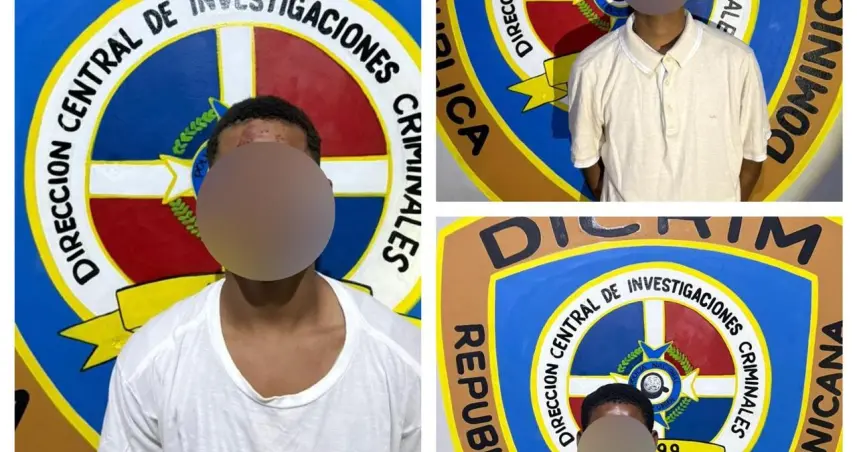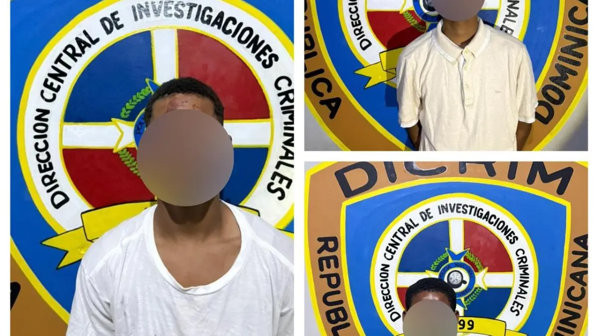 Los detenidos son Kelvin Díaz Castillo, de 19 años; su hermano Ángel Luis Díaz Castillo, de 22, y su primo Julio Alberto Díaz Castillo, de 18, todos residentes en el sector Don Bosco, quienes fueron arrestados en las inmediaciones del hecho tras un incidente que se produjo luego de que la patrulla retuviera una motocicleta en la que estos se desplazaban de manera irregular.