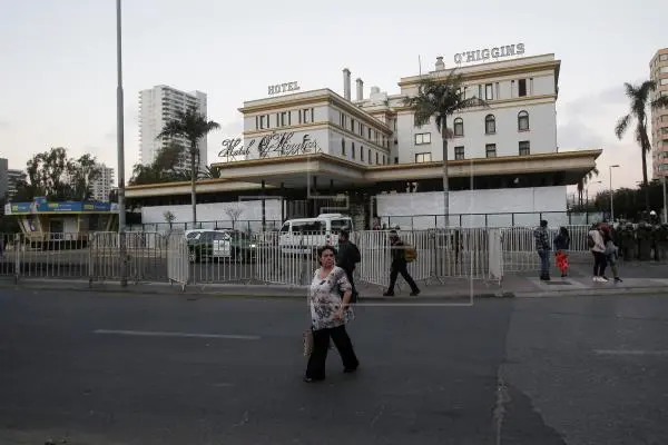 Los disturbios llegaron al emblemático Hotel O'Higgins, hospedaje oficial de los artistas hasta mediados de la década del 2000, que debió echar el cierre, de forma indefinida, tras ser atacado por un grupo de encapuchados.