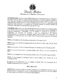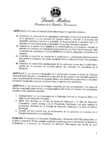 El portavoz del Gobierno y director general de Comunicación, Roberto Rodríguez Marchena informó este martes que el presidente Danilo Medina, promulgó un nuevo decreto 249-19 creando así el Fondo de Cohesión Territorial para promover entre el Gobierno Central y gobiernos locales el cofinanciamiento de proyectos de inversión pública de interés común, con énfasis en los municipios más deprimidos.