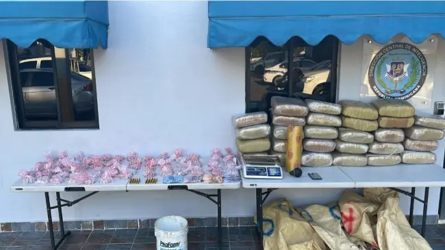 SANTO DOMINGO.- Agentes de la Policía Nacional apresaron a dos hombres en flagrante delito cuando se trasladaban en un vehículo con 28 pacas de marihuana, tres millares de cápsulas para pistola, dinero en efectivo y una balanza, durante un operativo realizado en el sector de Villa Juana del Distrito Nacional.