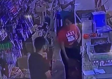 El ciudadano de origen asiático le tiró un objeto que aparenta ser una calculadora y ella de inmediato reacciona lanzándole otro objeto que tenía en la mano, según captaron las cámaras de seguridad del negocio.
