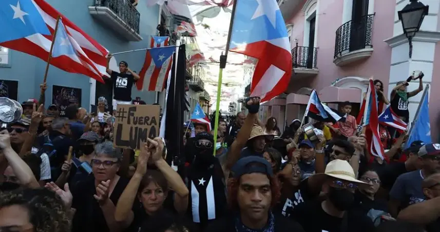 San Juan.- La Policía de Puerto Rico detuvo al grupo de manifestantes que saltó este miércoles una valla de seguridad frente a La Fortaleza, sede del Ejecutivo puertorriqueño, para protestar en contra de Luma Energy, a cargo de la transmisión y distribución de energía en la isla.
