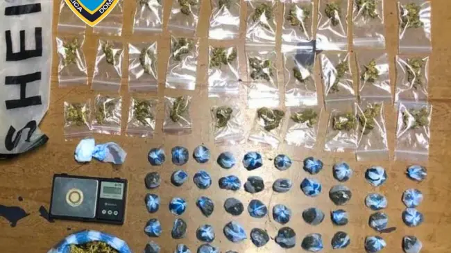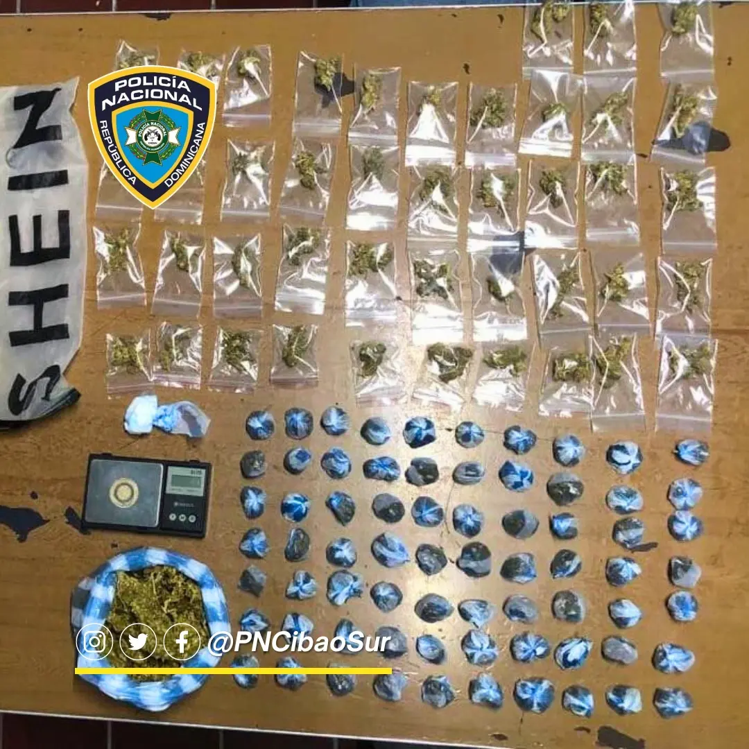 En el lugar, las autoridades encontraron 43 porciones de un vegetal, con características similares a la marihuana Crispí, dispuestas sobre una mesa y embaladas en bolsas plásticas tipo Ziploc, transparentes. Adicionalmente, se decomisaron 70 porciones más de una sustancia similar, igualmente de tono verde, envueltas en fragmentos de bolsas plásticas.