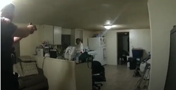 Hay una interacción relativamente normal entre la mujer y el policía hasta que este sacó su arma, ordenó a Massey que dejara una olla con agua caliente que estaba en su estufa y luego le disparó fatalmente en el rostro.