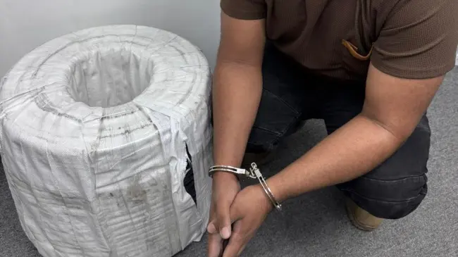 El detenido fue identificado como Misrain Rubio Cruz, quien fue sorprendido en flagrante delito con un rollo de alambre eléctrico de aproximadamente 300 metros, perteneciente a Edeeste.