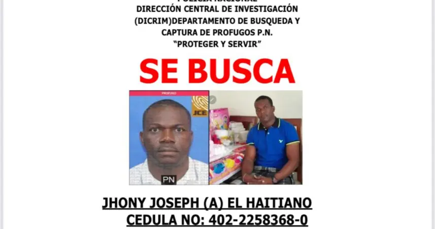 Santo Domingo.– Santo Domingo.- La Policía Nacional, a través de la Dirección Central de Investigación (DICRIM), Departamento de Búsqueda y Captura de Prófugos, informó que busca de forma activa a Jhony Joseph (a) El Haitiano, acusado de homicidio en el municipio Santo Domingo Este.
