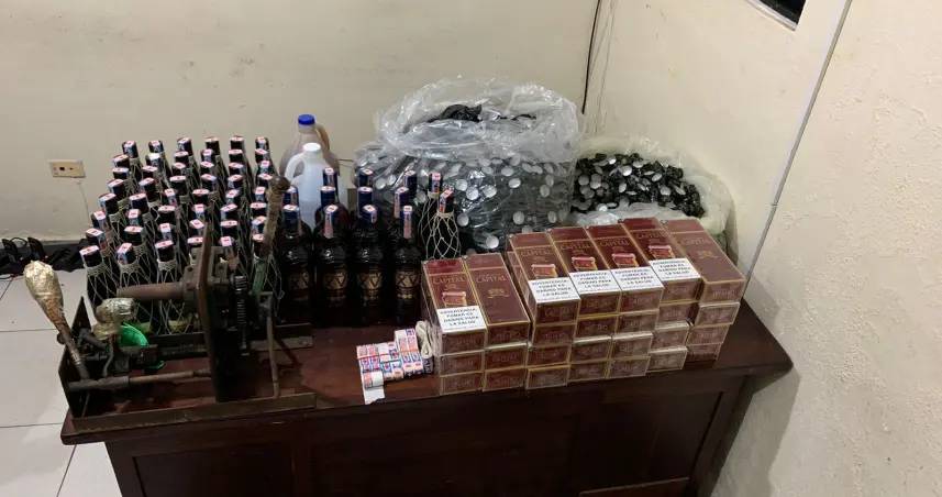 A través de un comunicado, la PN indicó que en la residencia de un hombre identificado como Adabel Almonte Báez (a) Balbo, también se ocuparon 96 botellas vacías, 8,000 unidades de tapas, una máquina para colocar tapas, dos galones de colorante y presunto clerén, cuatro resmas de sellos y 5,200 unidades de cigarrillos.