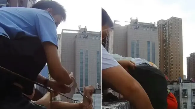 El agente encontró al suicida, llamado Chen, al borde de la azotea de su casa, ubicada en la parte central de la provincia de Hubei, luego de que la familia del hombre llamara a la Policía, preocupada por su seguridad.