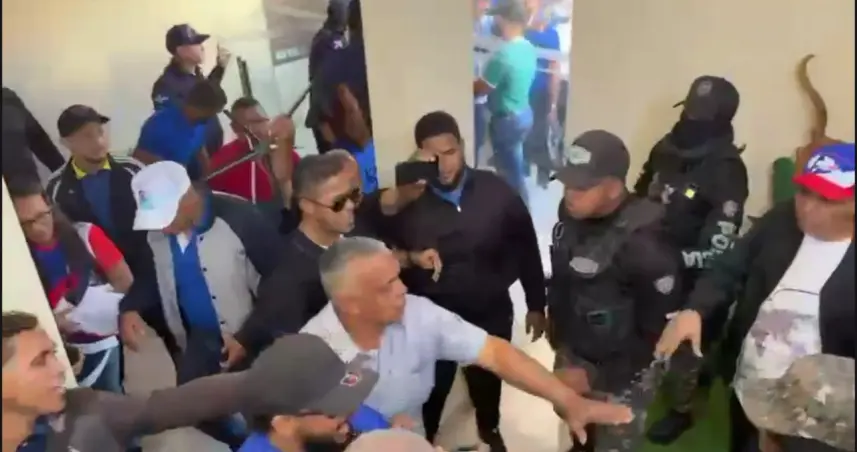 El incidente ocurrió en medio de la concentración de la ADP de la provincia Duarte y Hermanas Mirabal, cuando una comisión intentaba ingresar a la Regional 07 siendo recibidos con agresiones de agentes policiales apostados en la entrada.