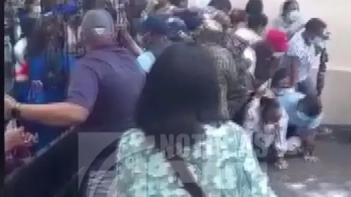 A empujones y rompiendo brazos entraron los médicos y enfermeras al Servicio Regional de Salud; luego que hicieran largas filas desde la madrugada de este lunes, para retirar el pago del mes de octubre.