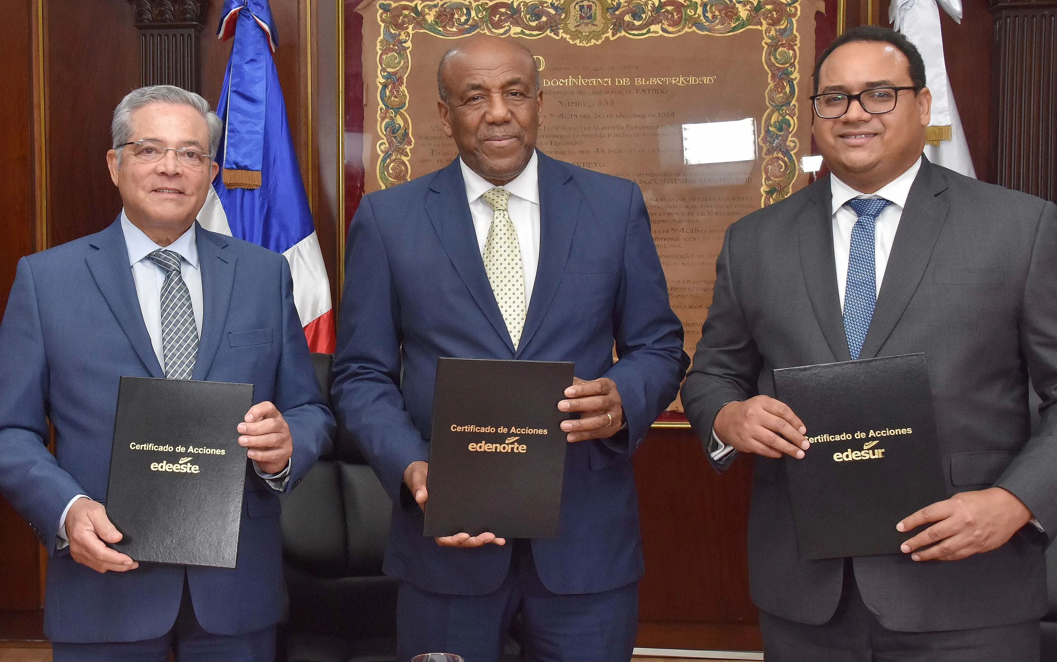 Durante un acto el ministro de Energía y Minas, Antonio Almonte, y el vicepresidente del Consejo Unificado de las EDE, Andrés Astacio, procedieron a cancelar las acciones de Edeeste, Edenorte y Edesur que estaban en manos de la Corporación Dominicana de Empresas Eléctricas Estatales (CDEEE) y a emitir nuevos certificados por el mismo valor que fueron entregados a José Florentino, presidente del FONPER.